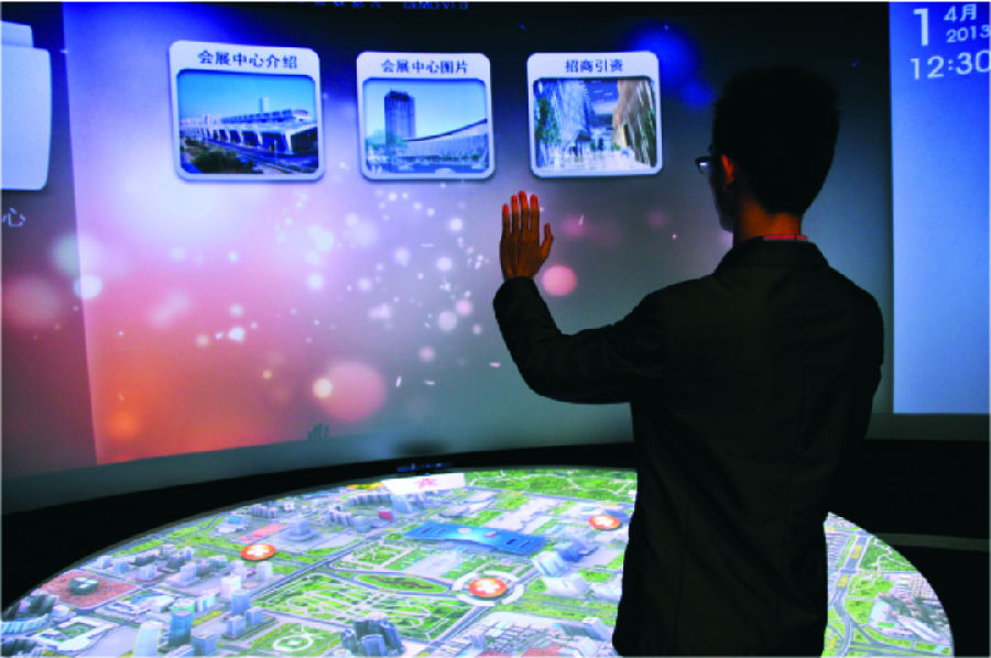 數(shù)字展廳集各種多媒體展覽展示系統(tǒng)為一體的綜合展示平臺(tái),包括數(shù)字沙盤、環(huán)幕/弧幕/球幕影廳、迎賓地幕系統(tǒng)、互動(dòng)吧臺(tái)、互動(dòng)鏡面及觸摸屏等等。同時(shí),由于融入了各種高新科技技 ……
